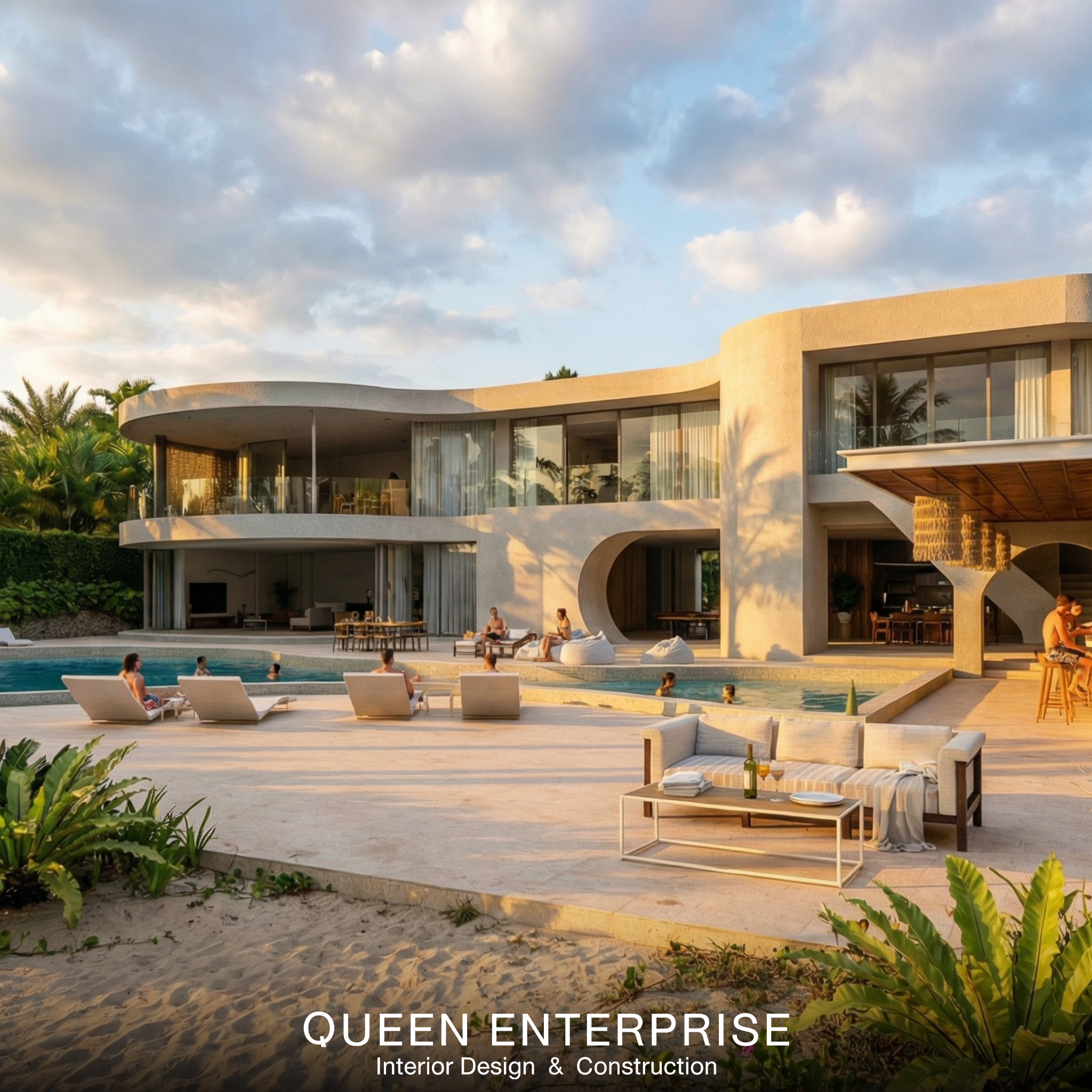 เน้นโครงสร้างและดีเทลที่ถูกต้อง วัสดุที่เหมาะกับสภาพชื้น/ทะเล ผังที่ใช้งานลื่นไหล และพื้นที่หลักที่ลูกค้าสัมผัสจริง เช่น Main Living, Master, สระ, Landscape บางจุด