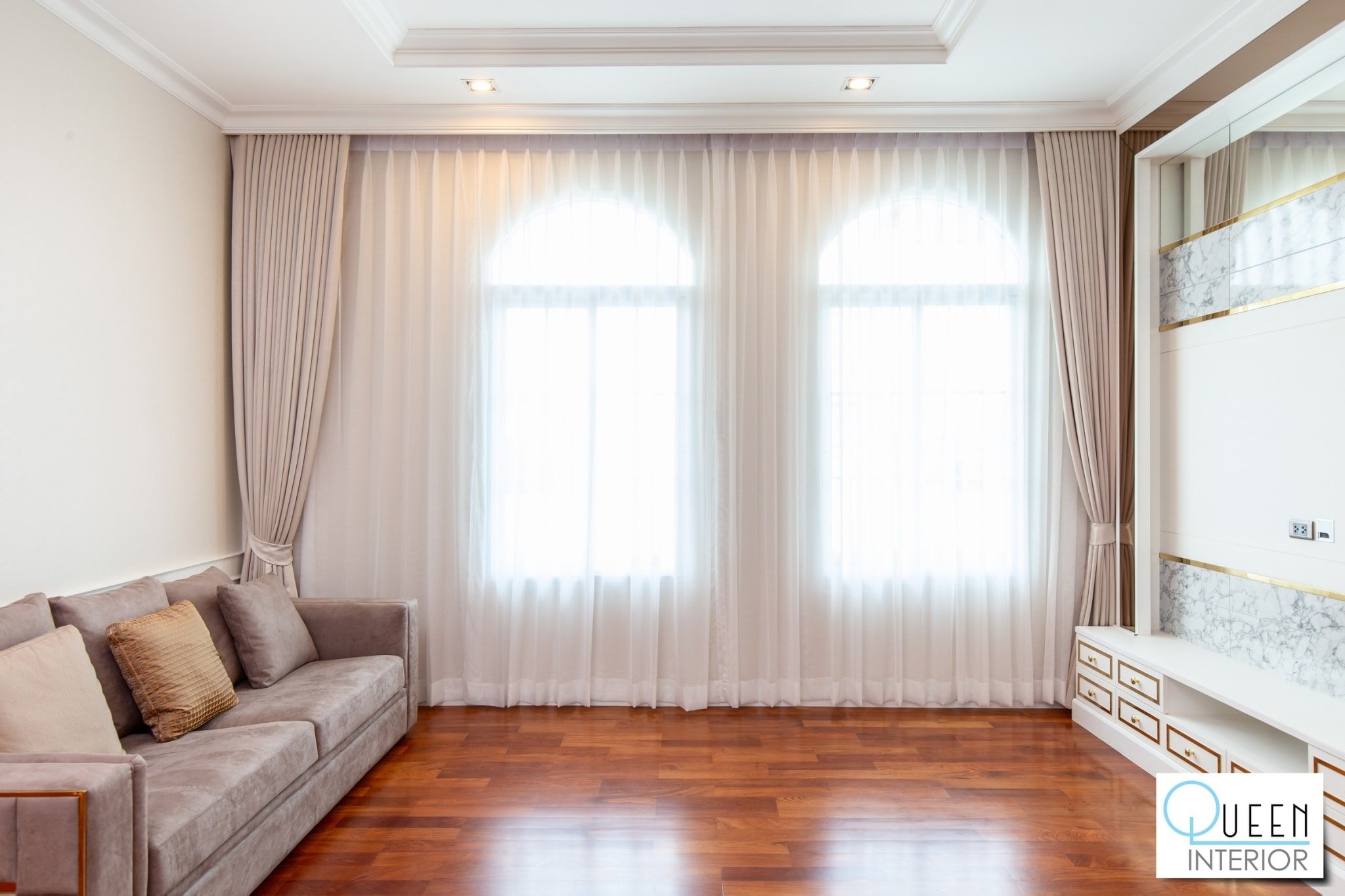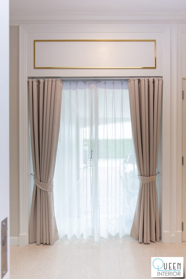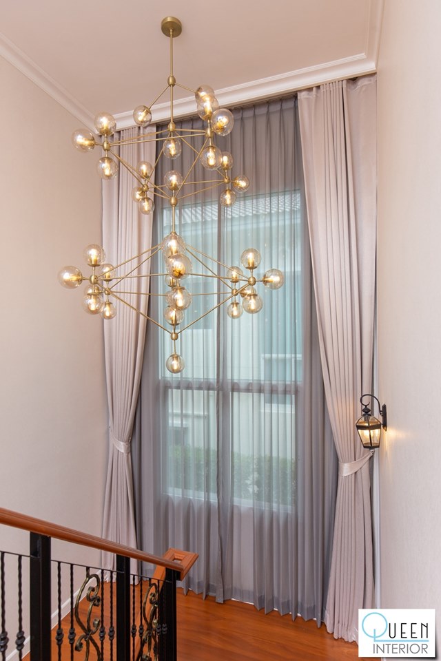 ในส่วนของ งานติดตั้งผ้าม่าน เราได้คัดสรรเนื้อผ้าเกรดพรีเมียมที่สอดรับกับสถาปัตยกรรมสไตล์คลาสสิกของโครงการ โดยเน้นผ้าม่านที่ช่วยกรองแสงและป้องกันรังสี UV ได้อย่างดีเยี่ยม พร้อมการจัดลอนผ้าที่ทิ้งตัวสวยงามประณีต เสริมภาพลักษณ์ให้ตัวบ้านดูภูมิฐานและมีความเป็นส่วนตัวสูงสุดในทุกมุมมอง