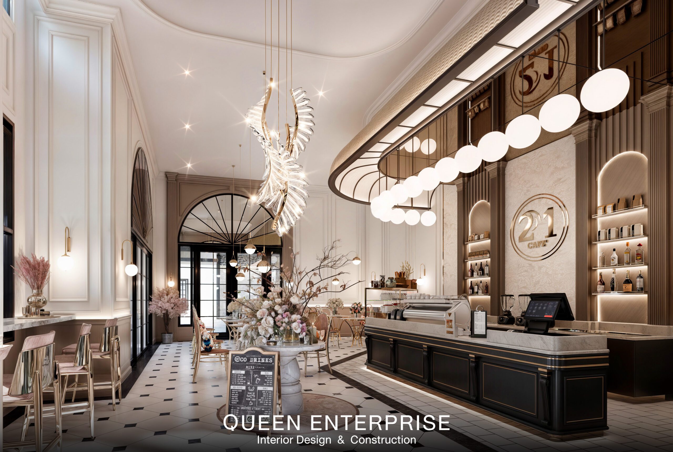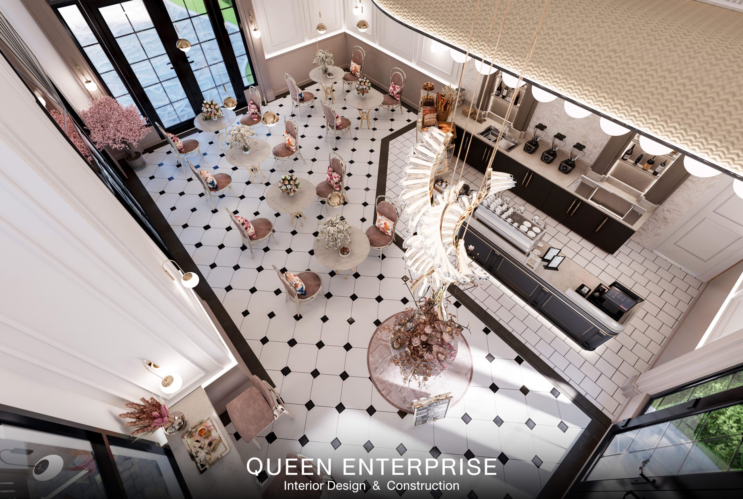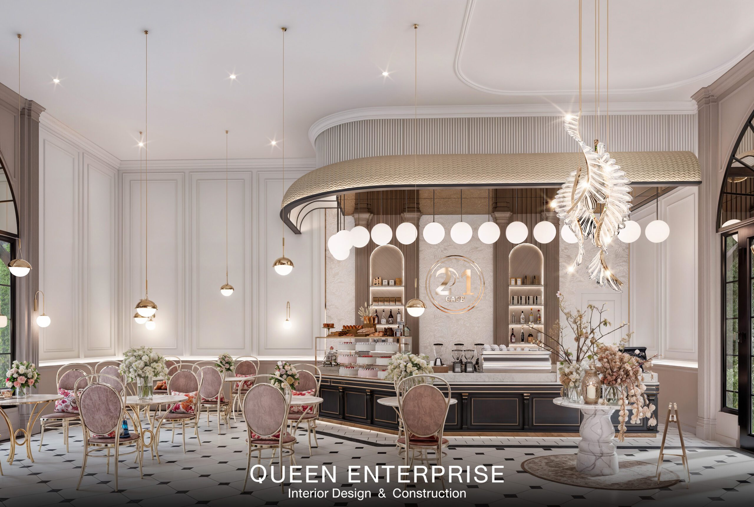 บรรยากาศแห่งรสนิยมที่สัมผัสได้จริง: ผลงานตกแต่งภายในร้าน The Gallery Cafe โดย Queen Enterprise Construction Company