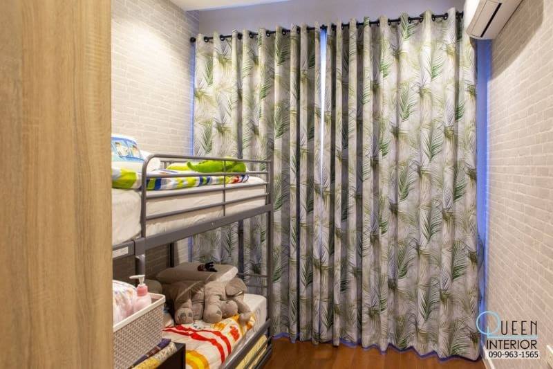 ในหน้าผลงานโครงการนี้ คุณจะได้เห็นรายละเอียดของ ผ้าม่านดีไซน์พิเศษ ที่คัดสรรเนื้อผ้าเกรดนำเข้า ซึ่งมีคุณสมบัติโดดเด่นในการทิ้งตัวที่สวยงามและช่วยป้องกันแสงแดดรวมถึงรังสี UV ได้อย่างมีประสิทธิภาพ ทำให้พื้นที่ภายในห้องเย็นสบายและดูภูมิฐานในทุกช่วงเวลา ผสานเข้ากับการตกแต่งผนังด้วย วอลเปเปอร์พรีเมียม ที่เลือกใช้โทนสีและลวดลายที่ช่วยสร้างมิติให้ห้องดูมีระดับและมีสไตล์ที่ชัดเจน